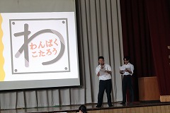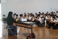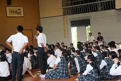 夏の風物詩である野球応援に向けて、全校生徒で練習を行いました。熱中症予防対策を万全に整えて、1時間にわたり熱のこもった声出しや振り付け練習に取り組みました。 |