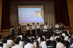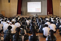 宇部市役所人権・男女共同参画推進課 副課長 奈須 智孝 様 、主務主任 木原 文恵 様 をお招きしジェンダー問題をテーマに、第一体育館にて道徳教育講演会を開催しました。 |