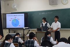 保健指導が各教室で実施されました。各クラスの保健委員が「目の健康とコンタクトレンズ」をテーマに講義を行い、目の健康とコンタクトレンズの正しい使い方について理解を深めることができました。 |