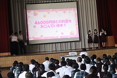 5、6時間目に、第一体育館にて宇部商コレクション投資家説明会を実施しました。11月に開催する宇部商コレクションに向けて9社(3年生)がプレゼンテーションを行い、1・2年生が投資先を決定しました。 |