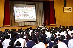 宇部警察署生活安全課の方を講師としてお招きし、第一体育館にて「薬物乱用ダメ。ゼッタイ。教室」を実施しました。 薬物乱用の危険性や依存の恐ろしさ、そして一度の過ちが人生に大きな影響を与えるなど、具体的な事例を交えてわかりやすくご説明いただきました。 |