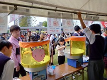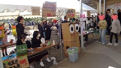 第74回宇部まつりに3年生が参加しました。当日は、綿菓子や缶バッチの販売をしました。閉店の16時まで多くのお客様に御来場いただきありがとうございました。 |