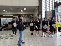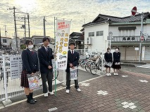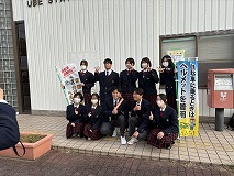 本日、宇部駅前で生徒会の生徒が宇部警察署の方々と共に、自転車の2ロック施錠の呼びかけ活動を行いました。 |