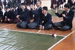 宇部市パラスポーツクラブ代表 大畑 直美 様 をお招きし、第一体育館にてパラスポーツの体験を行いました。パラスポーツを通して、障害の有無にかかわらず、「みんなで 一緒に楽しむ」ことを経験する中で、偏見や先入観を取り除き、誰もが共に生きる社会を築くための「心のバリアフリー」について様々な体験から学ぶことができました。 |