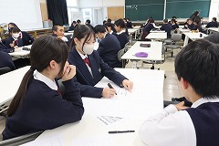 本日6時間目に生徒総会を開催しました。昨年度の決算報告および今年度予算審議の後、以下の4つの議題について話し合いました。 セーターでの登下校、登校靴の自由化、施設・設備の充実、水泳大会の代替行事。多くの生徒が積極的に意見を出し合い、非常に活発な生徒総会となりました。 |
