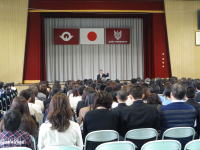 [03] 対面式 2013年4月9日2,3年生と新入生との対面式が行われました。特に新入生は、緊張した面持ちで式に臨んでいました。この式で、今年度初めて全校生徒が一堂に揃いました。本当の意味での宇部商が今日からスタートしました。 |
