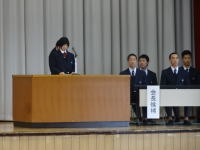 [30] 新生徒会任命式 2017年1月24日新生徒会の役員の任命式がありました。画像は、旧生徒会長が新生徒会に向けて挨拶をしているところです。旧生徒会の皆さん、お疲れ様でした。旧生徒会の皆さんの気持ち、意志は新生徒会に引き継がれていく事と思います。 |