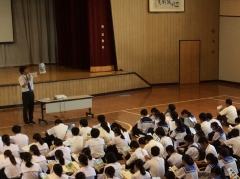 卒業された先輩方の進路や高校生活に関する体験談を,6時間目に第一体育館で聞きました。 |
