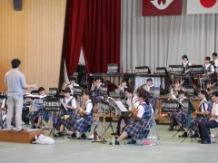 夏季休暇中の8月9日(日)11時から第一体育館において吹奏楽部のメモリアルコンサートを実施しました。原則として部員の保護者のみに公開し,1時間程度の演奏を披露しました。 |