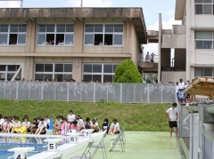 校内水泳大会をおこないました。感染症対策として,プログラムを精選し,応援場所や招集場所を分散して密にならないよう工夫を凝らして実施しました。 |