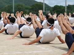 全学年で新体力テストをおこないました。50m走やハンドボール投げ,反復横跳びや上体起こしなど,運動能力テストと体力診断テストを実施しました。 |