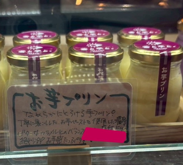 | お芋プリン | 紫芋プリン | 芋けんぴ(塩蜜かけ) |
